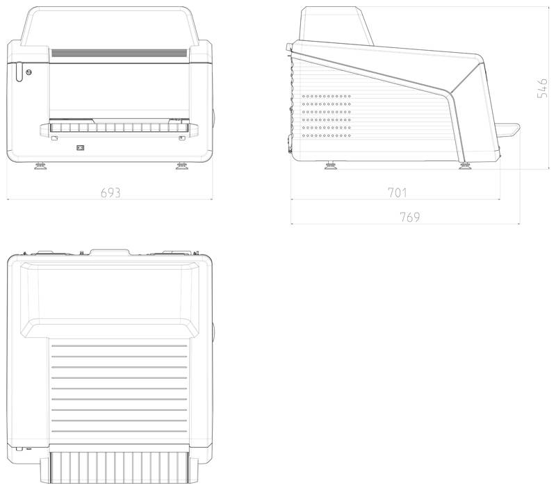 • (Ш x Г x В): 693 x 701 x 546 мм Глубина (с лотком для подачи): 769 мм