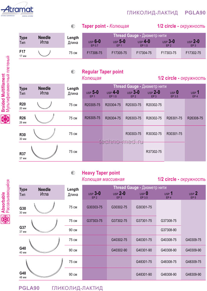 - Синтетический рассасывающийся мультифиламентный плетеный хирургический шовный материал, фиолетового цвета или неокрашенный.